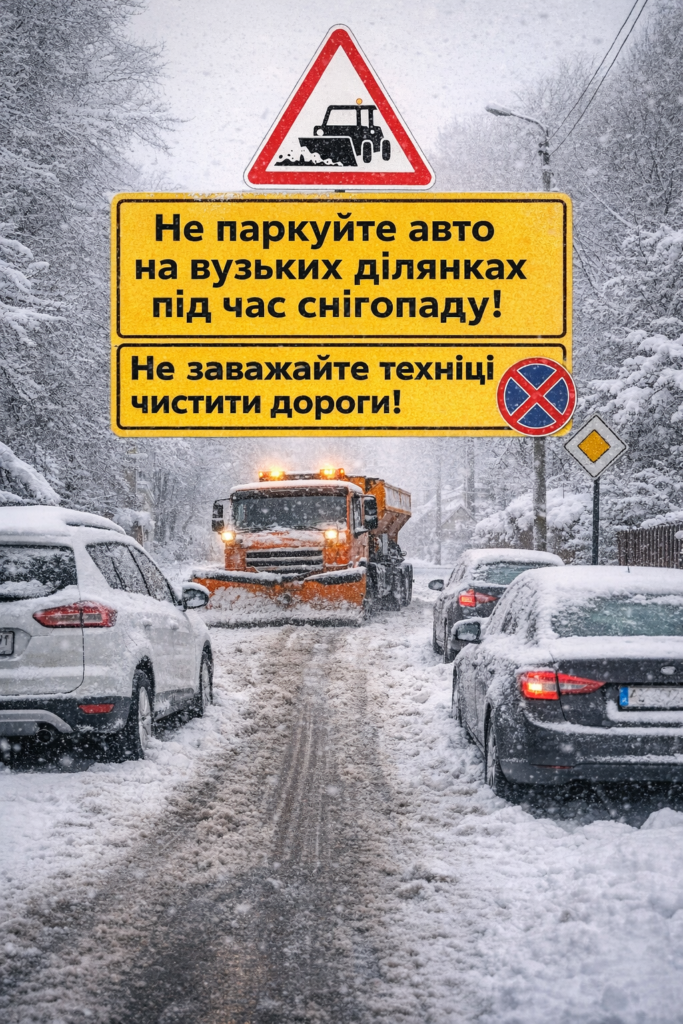 Під час снігопаду не паркуйте авто на вузьких ділянках: звернення КП до мешканців